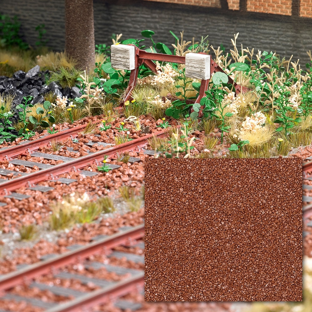 Schotter in realistischer Farbgebung zum vorbildgetreuen Einschottern von Gleisen. Staubfrei. Packungsinhalt: 600 ml. Für Gleis-Schotterungen empfehlen wir den Busch Boden- und Schotterkleber Nr. 7593.