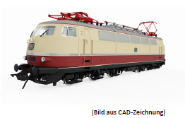 Elektrolok E03 002 Vorserie , DB, Epoche 3, rot-beige, mit Schürze und Scherenstromabnehmer, DB-Zeichen schwarz