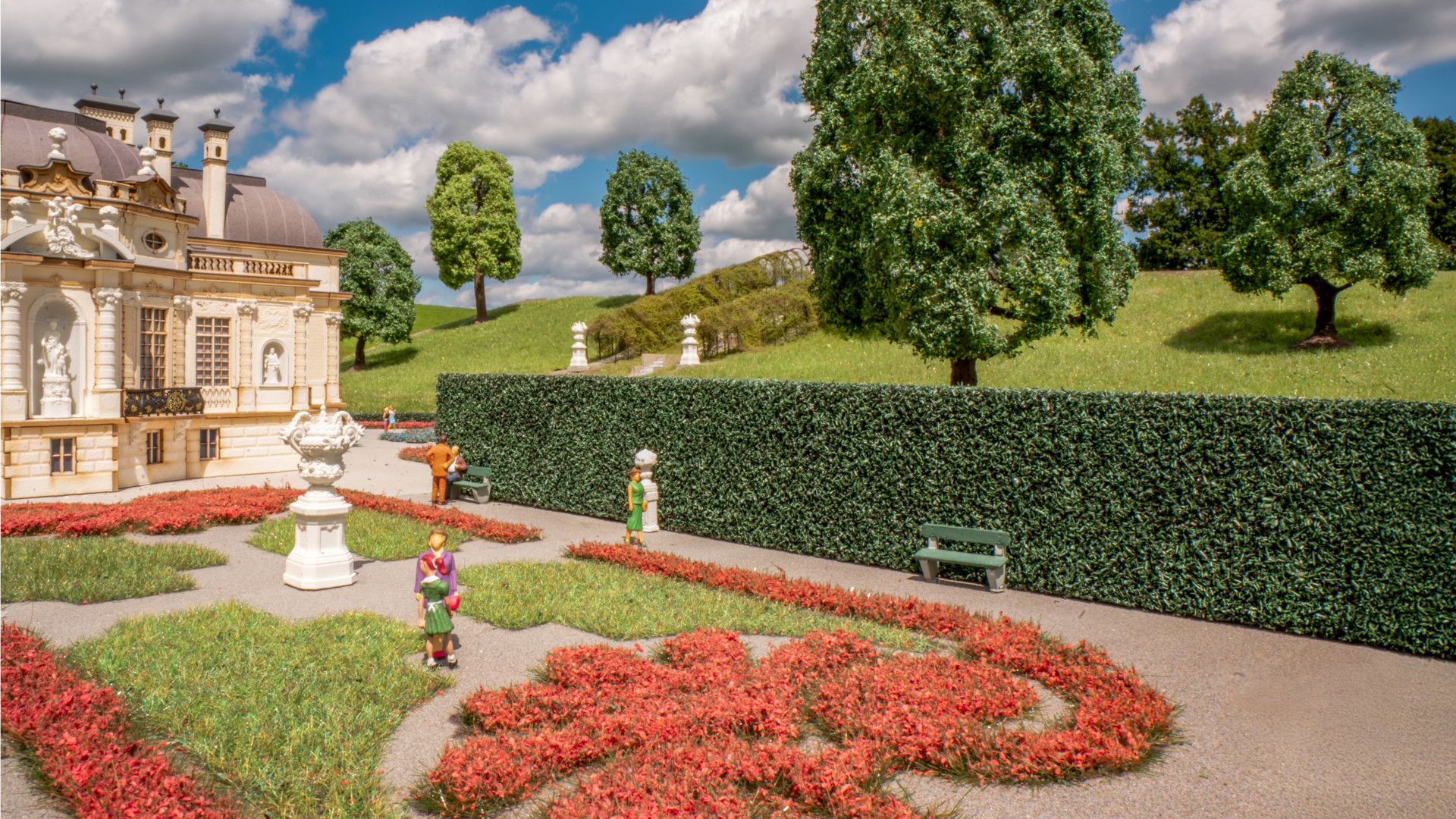 Hohe Hecken für wunderschöne Parkanlagen Mit den „Hecken, hoch (dunkelgrün)“ gestalten Sie realistische und detailreiche Begrenzungen für Gärten, Parkanlagen, Schlossgärten oder städtische Grünflächen auf Ihrer Modellbahnanlage oder in Ihrem Diorama. Die dichten, satt dunkelgrünen Hecken überzeugen durch ihre authentische Farbgebung und feine Struktur, die sofort einen natürlichen Eindruck vermittelt. Die hohe Bauform eignet sich ideal, um Sichtschutz, Einfriedungen oder formale Gartenarchitektur darzustellen. Dank der flexiblen Verarbeitung lassen sich die Hecken problemlos zuschneiden, formen und an die gewünschte Szenerie anpassen. Ob als repräsentative Gartenbegrenzung, ruhige Hintergrundkulisse oder markanter Blickfang – diese hochwertigen Hecken setzen klare Akzente und sorgen für mehr Tiefe und Realismus in Ihrer Modellwelt.