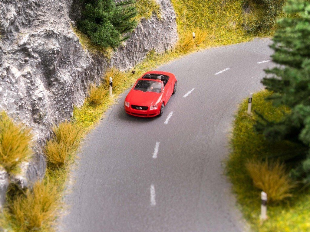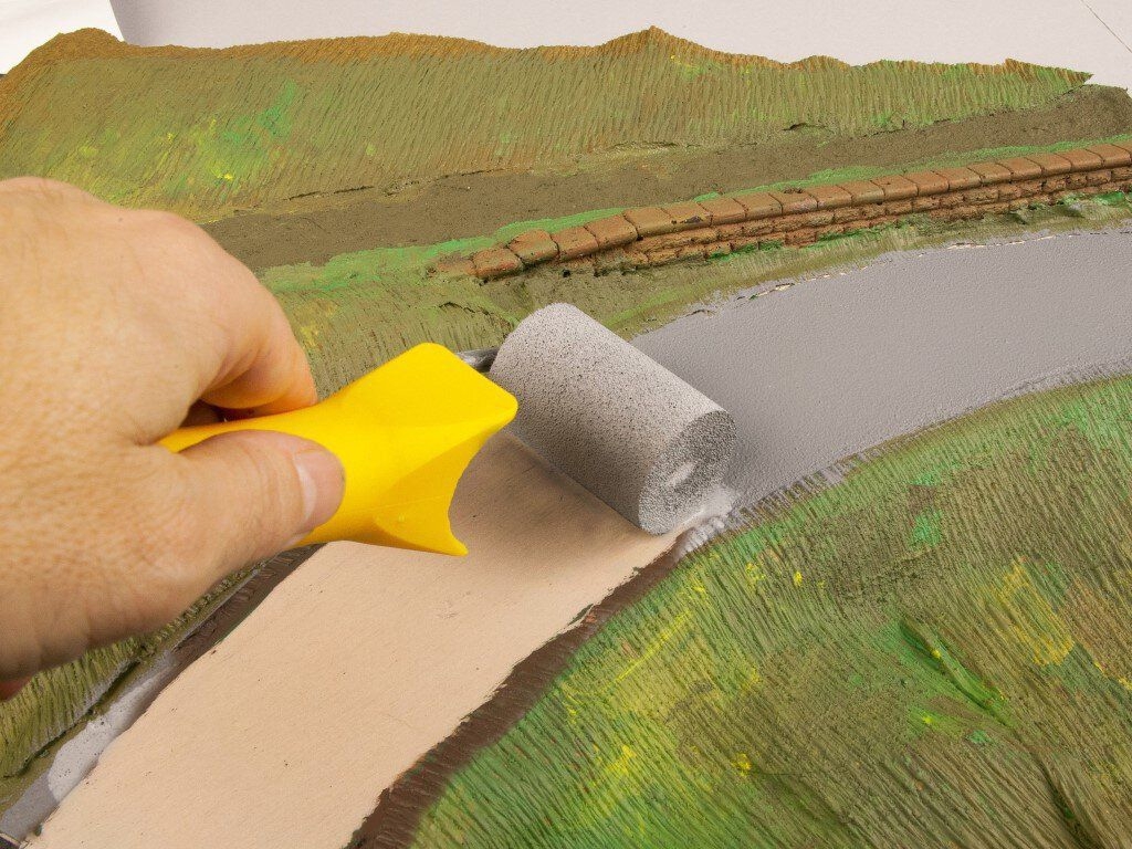 Perfekte Straßen selbst gemacht! Straßenbau-System Mit Hilfe des NOCH Straßenbau-Systems erstellen Sie realistische Modellstraßen ohne großen Aufwand selbst. Das System besteht aus der speziellen Straßenbau-Strukturfarbe und dem Straßenbau-Farbroller. Die innovative Straßenbau-Strukturfarbe wurde speziell für die Gestaltung von Modellstraßen entwickelt. Die Besonderheit ist, dass die Farbe beim Auftragen die Struktur des Verarbeitungswerkzeugs annimmt. Dies eröffnet vielfältige Gestaltungsmöglichkeiten: Je nachdem, mit welchem Werkzeug die Straßenbau-Strukturfarbe aufgetragen wird, ergeben sich neue, spannende Oberflächenstrukturen. Für die Gestaltung einer Asphaltstraße empfehlen wir den Straßenbau-Farbroller, da der Auftrag mit der Schaumstoffrolle dieses Werkzeuges eine realistische Asphaltstruktur ergibt. Dank der beiden Farbtöne "Asphalt grau" und "Asphalt anthrazit" lassen sich vorbildgetreue Modellstraßen perfekt gestalten. Abschließend wird die Straße mit den passenden Straßenmarkierungen versehen. Hierzu empfehlen wir das NOCH Start-Set Straßenmarkierung, das aus einem Straßenmarkierungsstift, einem Kurvenlineal und speziellen Schablonen besteht.