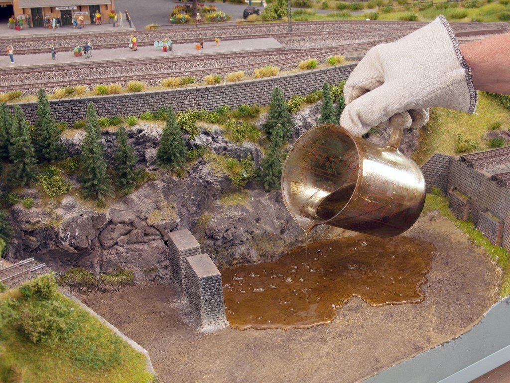 Water-Drops® "color" - die können Ihnen das Wasser reichen! Gewässer-Gestaltung mit Water-Drops® "color" Die Water-Drops® sind das ideale Material für die Nachbildung von stehenden und fließenden Gewässern im Modell. Zwei Dinge machen die Water-Drops® bei der Gewässer-Gestaltung unentbehrlich: ihre einfache Verarbeitung und die Möglichkeit, das Gewässer nach dem Aushärten erneut anzuschmelzen (z.B. mit einem starken Haartrockner). So können nachträglich Wellen modelliert oder Kratzer aus der Gewässeroberfläche entfernt werden. Die Water-Drops® werden in den Varianten "transparent", "easy" und "color" angeboten. Zwei Dinge machen die Water-Drops® bei der Gewässer-Gestaltung unentberhlich: ihre einfache Verarbeitung und die Möglichkeit, durch Erhitzen auch nachträglich noch Details wie Wellen oder Stromschnellen zu gestalten.